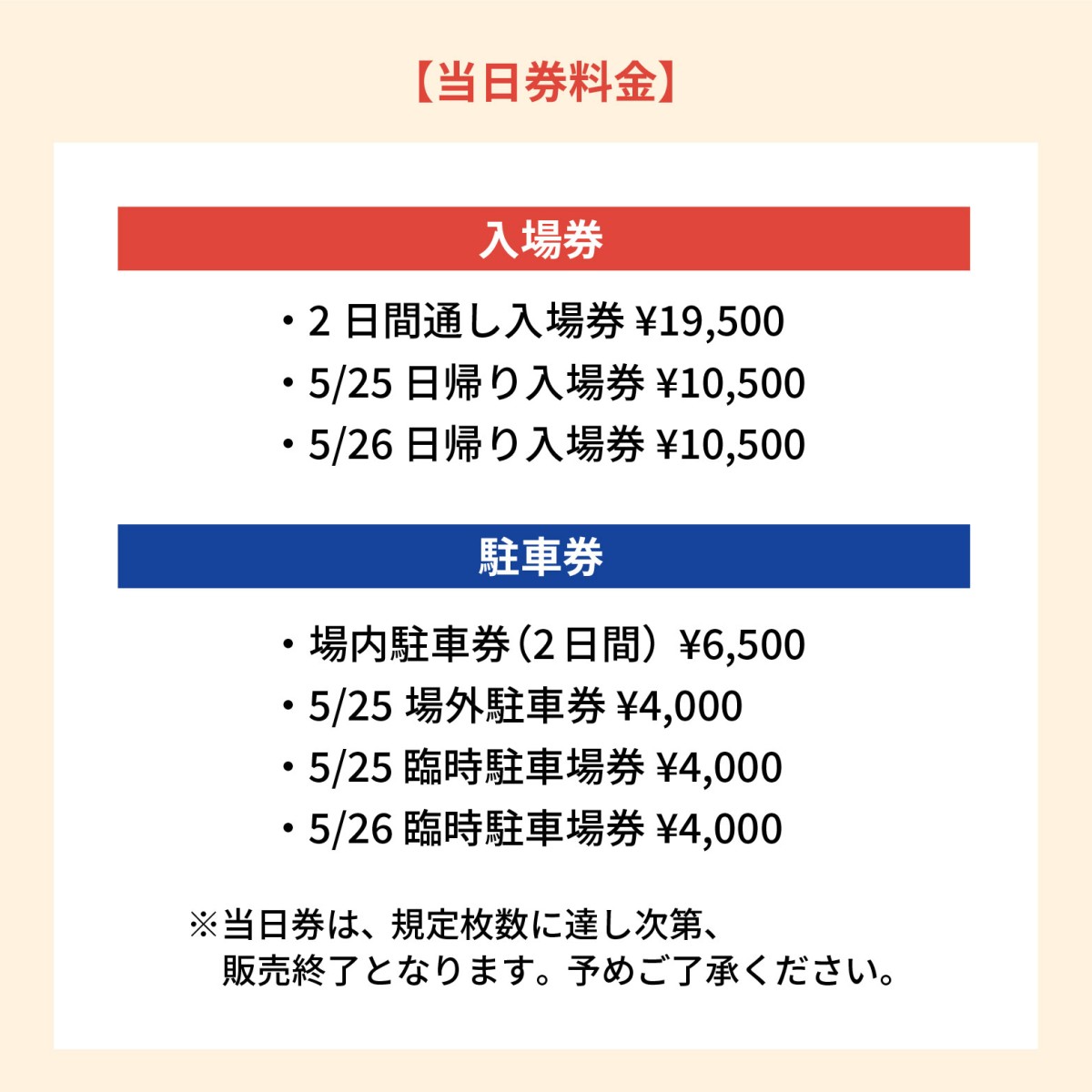 Ticketページで「Sold Out!」となっている券種以外をご用意して、当日券売り場(メインエントランス・Area map参照)にてお待ちしています!